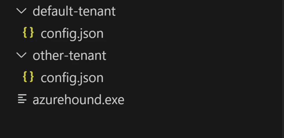 2. Organize the files created in a directory structure with a single AzureHound binary and a directory at the same level for each desired tenant configuration.