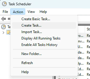 1. From the Action menu, select Create task… This will open a window to name and configure a new task.
