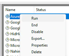 1. Right-click on the new AzureHound task in the Task Scheduler window, and choose Run.