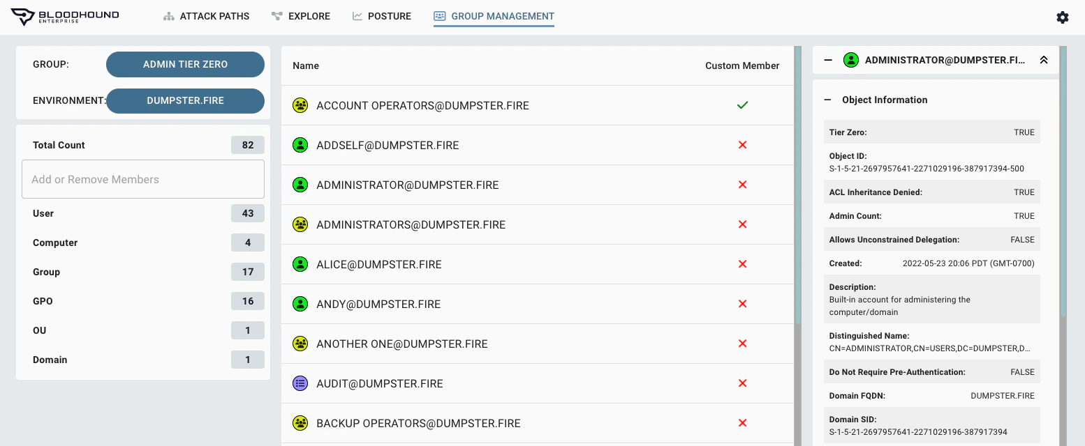 - Group Management tab - Completely new to CE and an additional view of Tier Zero resources for BHE, the Group Management view will let you review and modify current asset group members for Tier Zero / High Value as well as for Owned group in CE. We have additional enhancements coming to this view soon to filter and search the list!